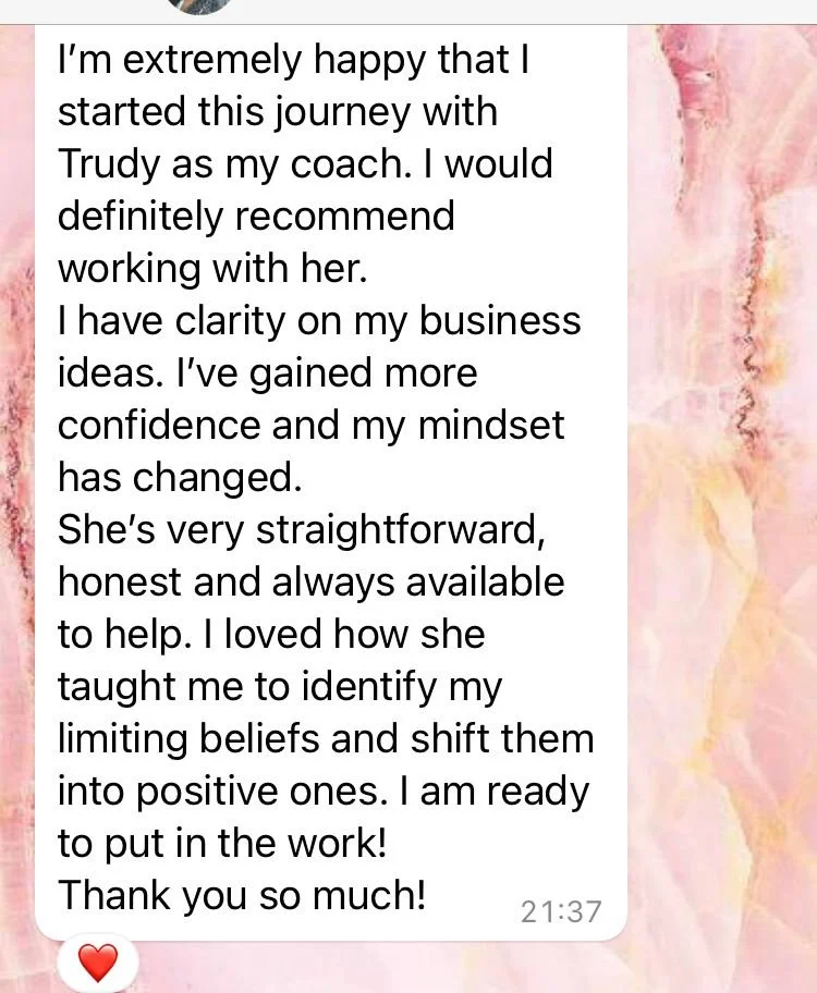 This journey is all about you achieving your business goals. These 1h 15 mins weekly coaching calls (x8) will help you gain clarity, understand your ‘‘why,’’ and gain a lot of confidence to kickstart your coaching biz in just 60 days!